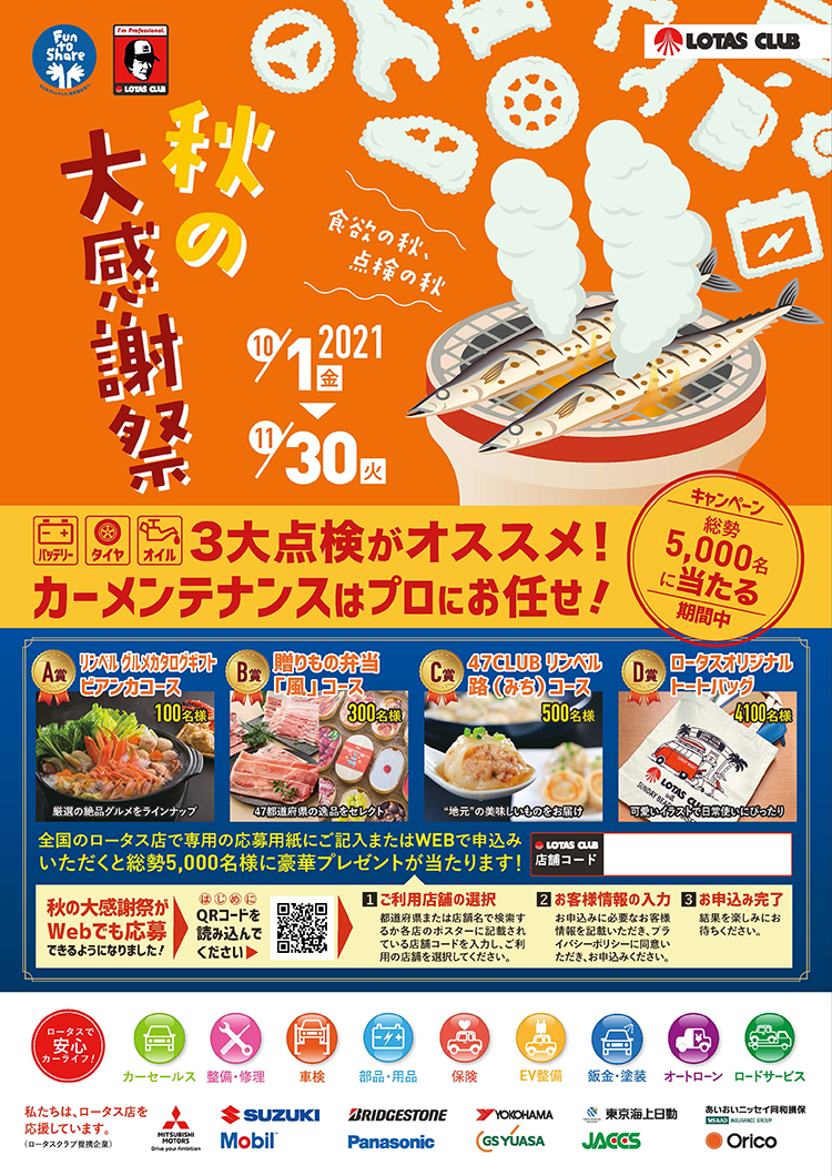 お客様へ日頃のご愛顧に感謝し、今年の秋もプレゼントキャンペーンを開催いたします!