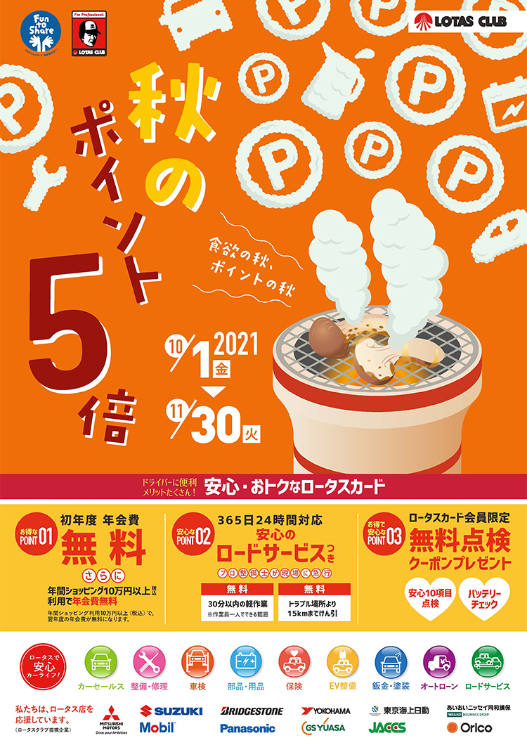 オイル交換・バッテリー交換・タイヤ購入など、ロータス店でのお支払いはロータスカードがダンゼンお得です!