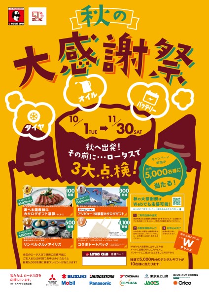 お客様へ日頃のご愛顧に感謝し、今年の秋もプレゼントキャンペーンを開催いたします!